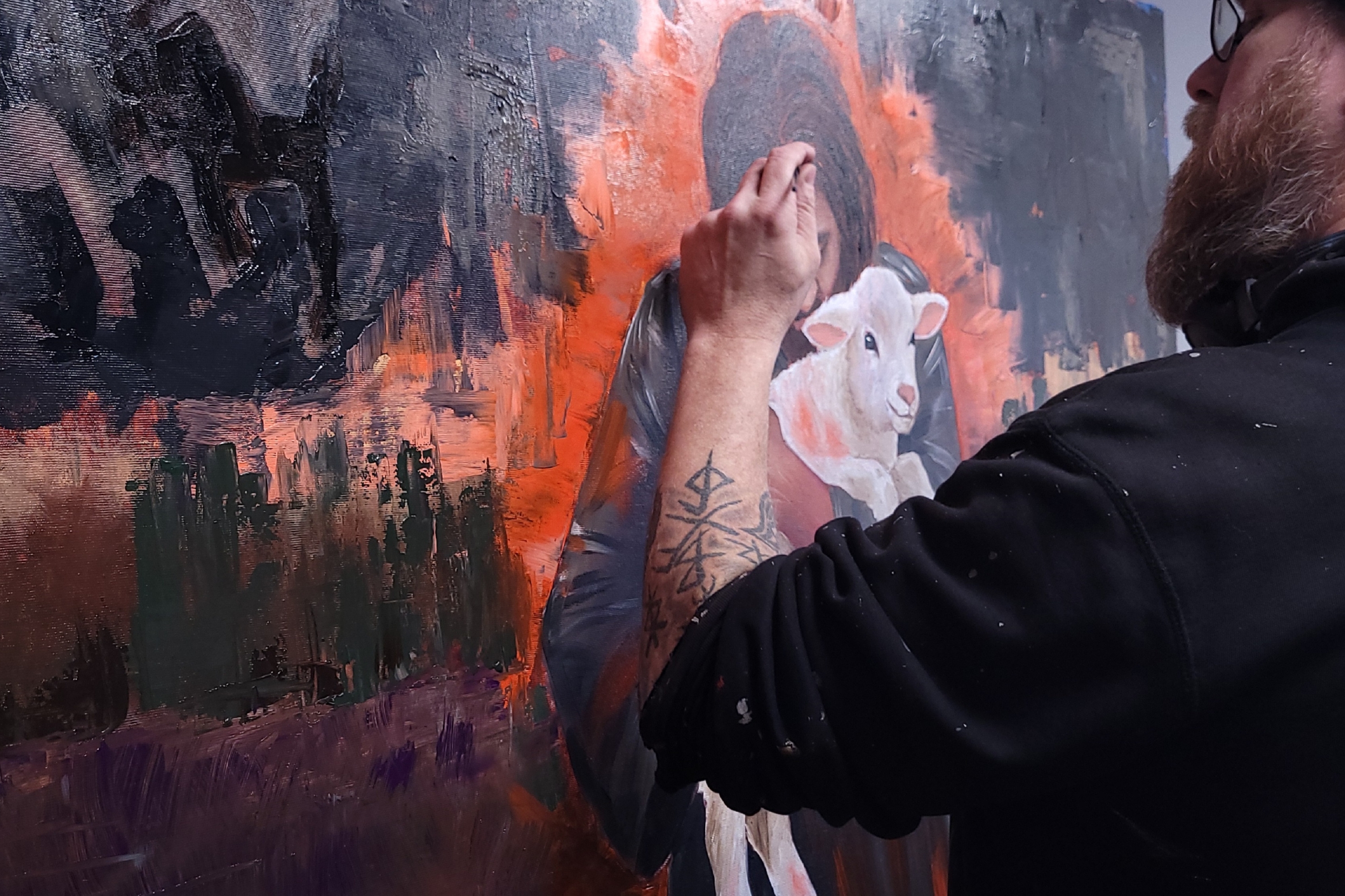 Een nieuwe serie schilderijen waarin thema’s als hoop, liefde, verraad, verlies en verbinding worden onderzocht. Niet als religieuze illustratie van het paasverhaal, maar als hedendaagse, persoonlijke interpretatie van de onderliggende thematiek.